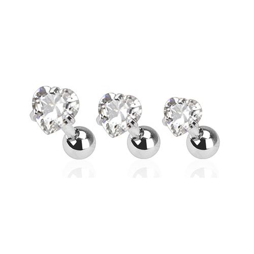You can get this set of three studs for your ear piercings if they have been made with a needle. This set contains three ear studs in different sizes. All of them have a beautiful heart-shaped gem, with a diameter of 1/8", 5/32", and 3/16" (3, 4, and 5 mm). This is an approximate measure, we know that the diameter of something that is not round is not exact.