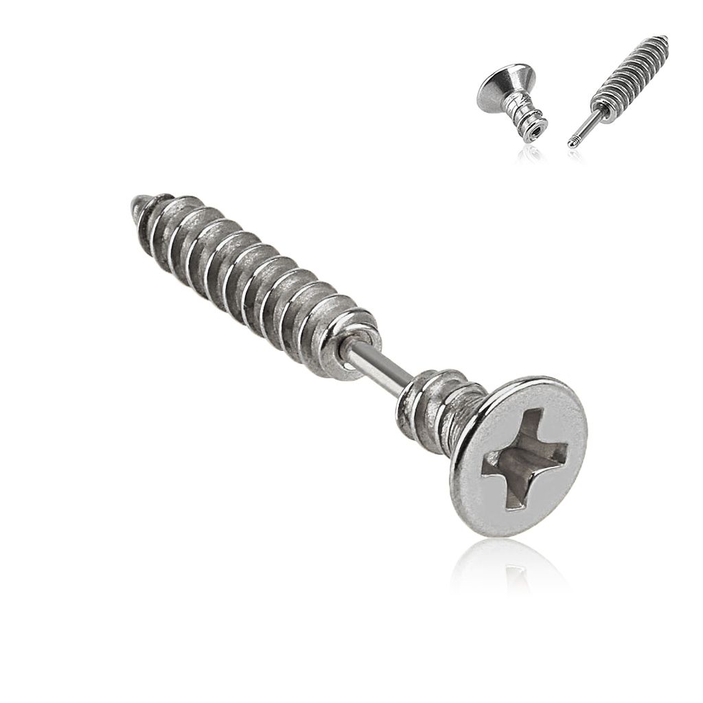 Are you tired of seeing everybody with the same piercing jewelry? This is an excellent chance to get a different item from the usual stuff in the market. This ear piercing consists of two pieces, the head and the tip of a screw. When you put it on, it looks like a real screw in your piercing.