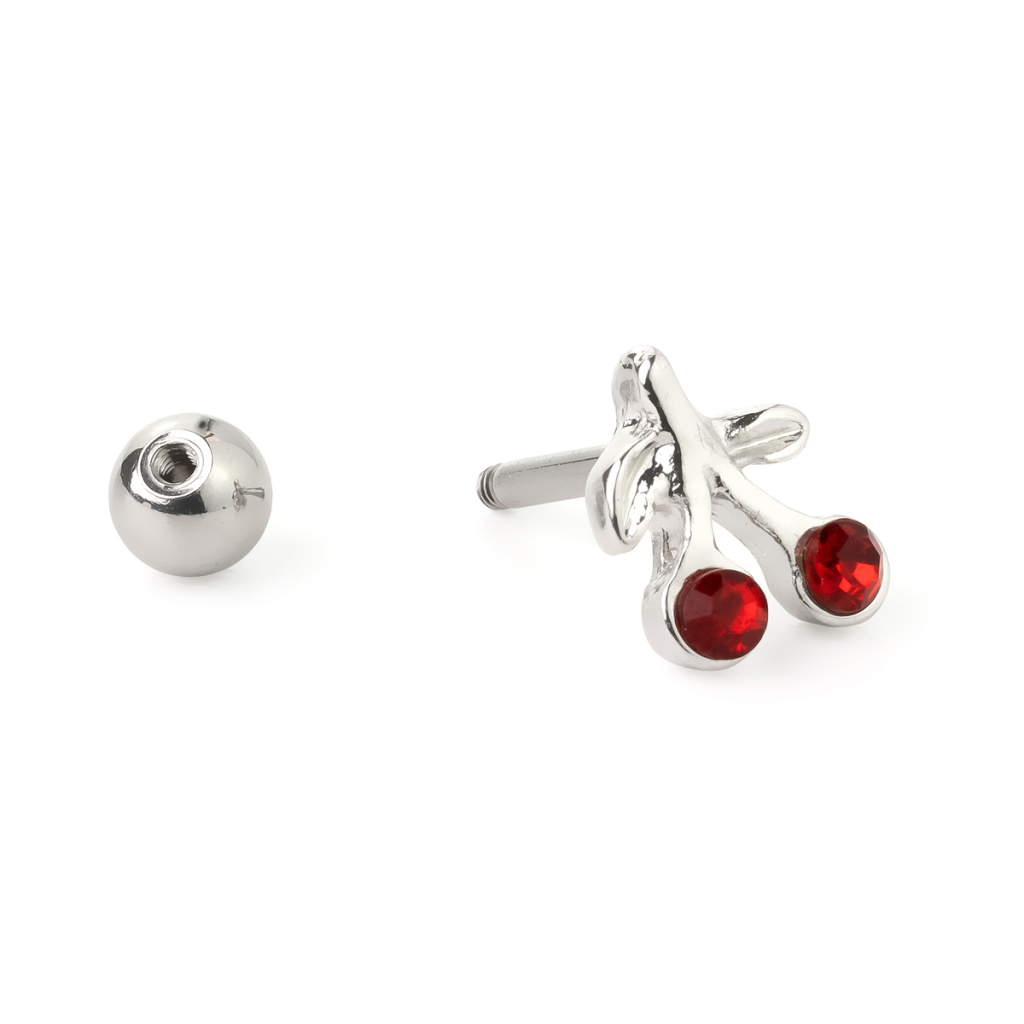 Ear piercing with red cherries