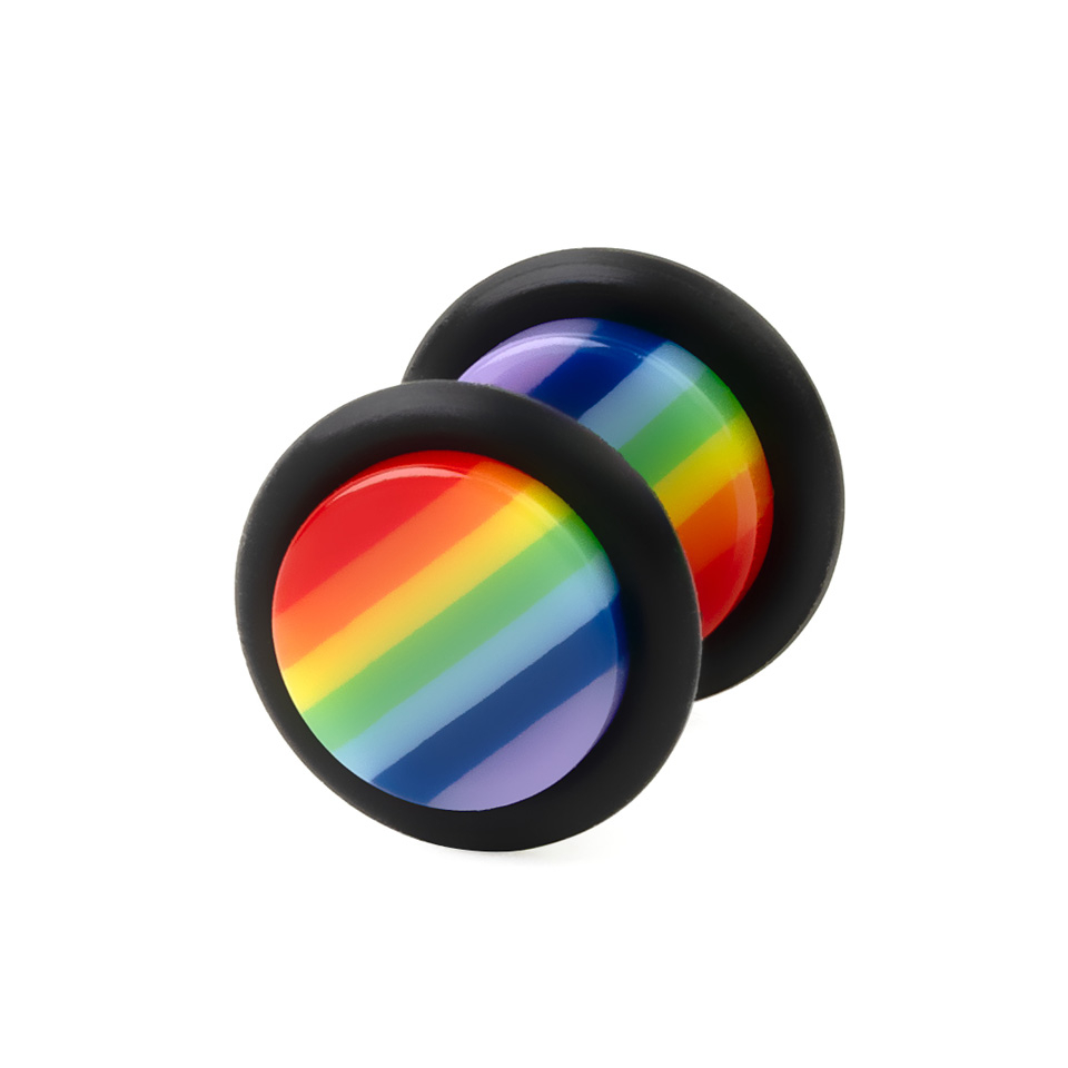 This fake plug has very bright rainbow colors. When someone sees them, they will probably think there's a connection with the gay or LGTB movement, related to these colors since the 70s, or maybe with the flag of peace.