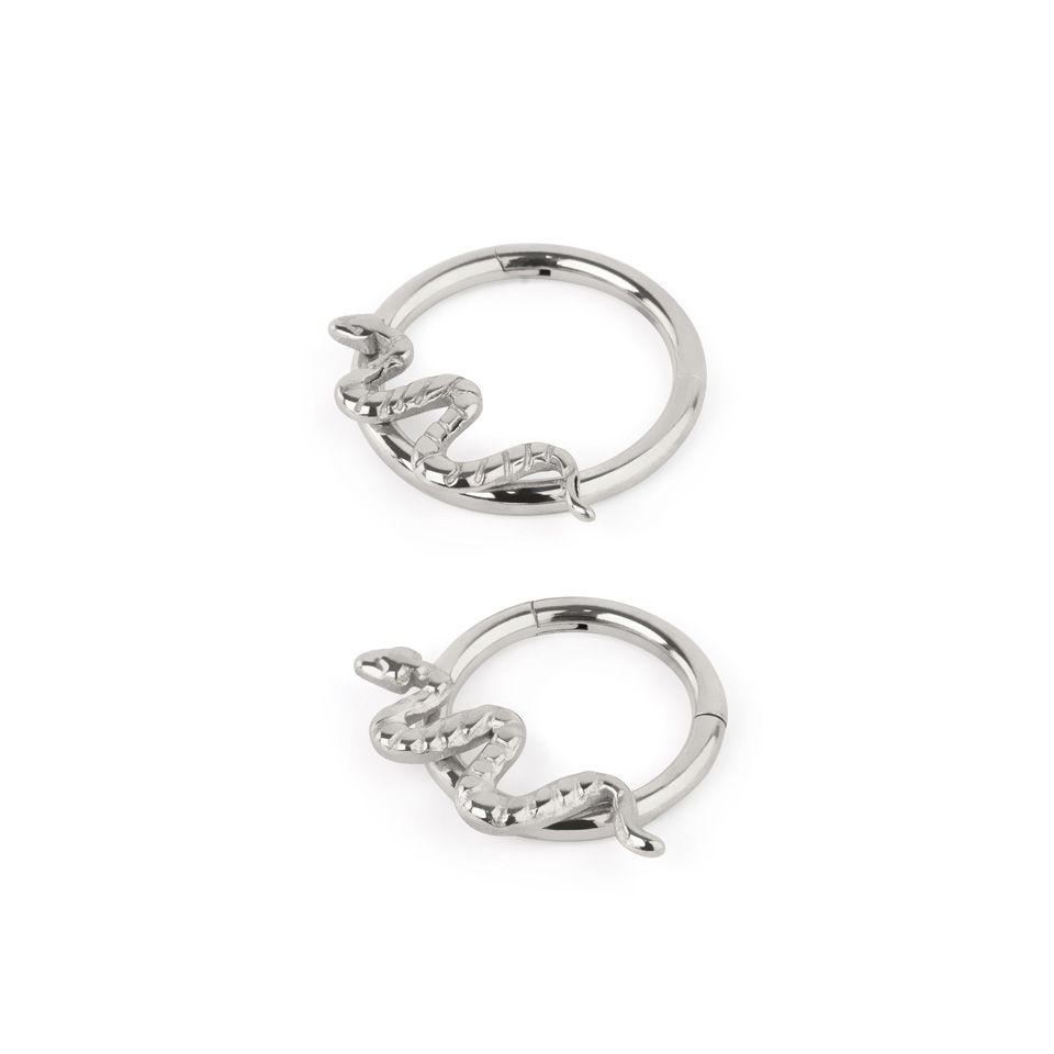 Unique about this ring is the stylish snake design that decorates the front. Bear in mind the snake's location on this ring when thinking about which piercing you want the jewelry for.