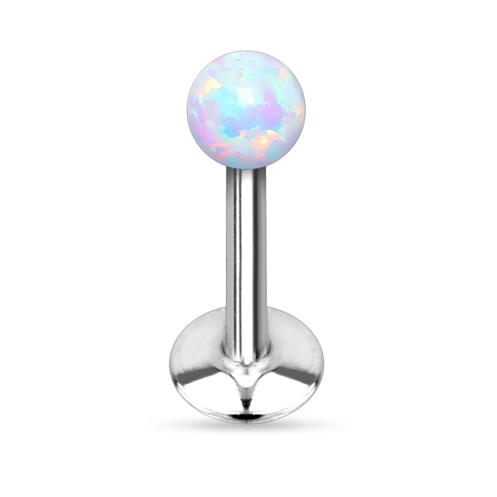 This is your chance to become the lucky owner of a delicious little labret with a round opal stone at the top. The labret, available in three different lengths, is made of surgical steel, a very durable and skin-friendly material. Surgical steel doesn't rust and tear, but it maintains its beautiful bright appearance even after being in contact with water, sweat, and other fluids.