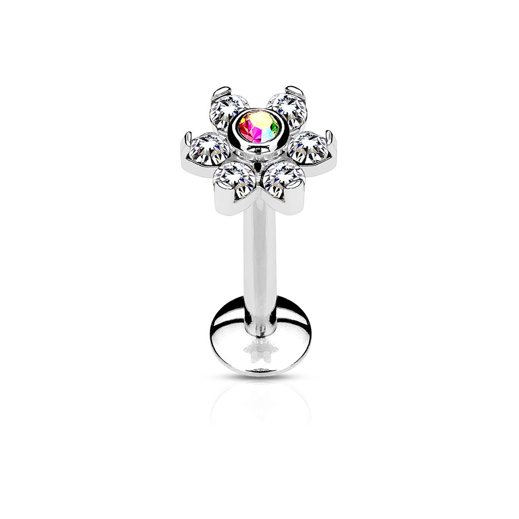 You can have this labret post in the color of your choice, where the silver model features a central gem in different tones.