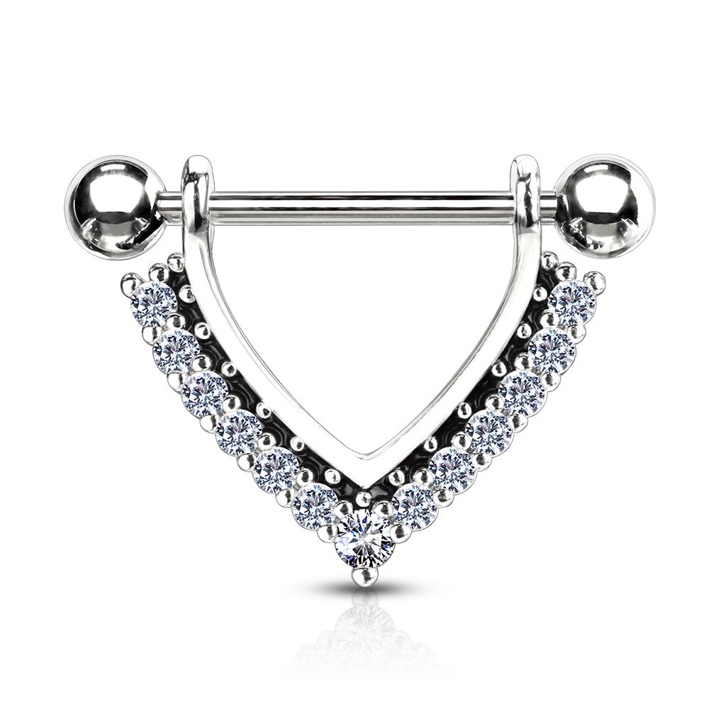 Nipple piercing in V-shape with stones