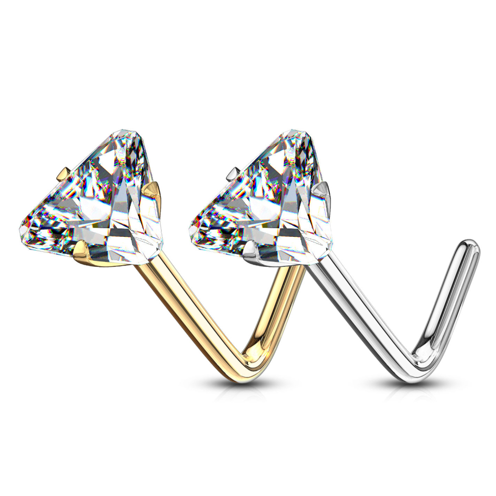 Nose ring made of 14k gold with triangular gem