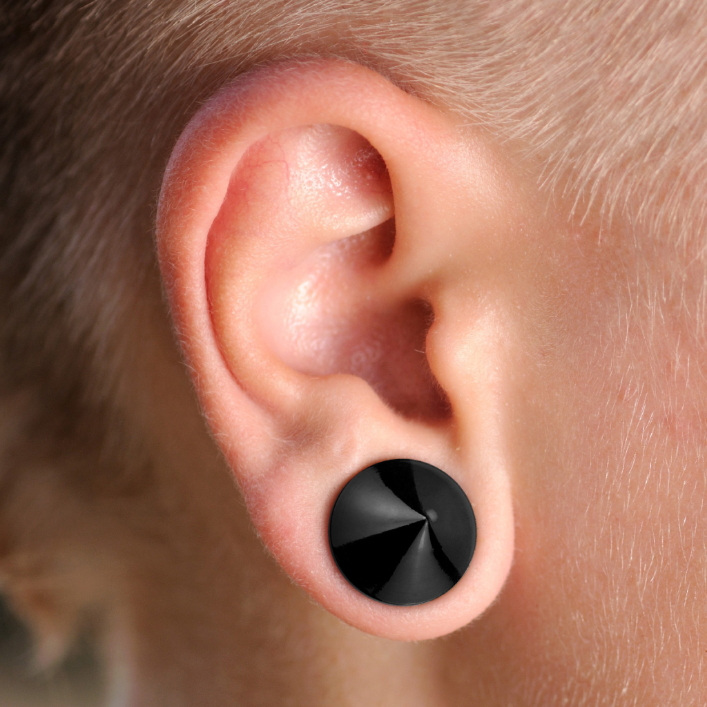 Do you want a new plug that is unconventional without going too far? This fabulous plug made of black acrylic has the shape of a cone on both sides. Besides, it has an internal thread, which makes it very easy to put in and take out from your ear gauge. The part of the plug that goes in your stretched piercing is a bit smaller than the outside, making it look bigger than it actually is.