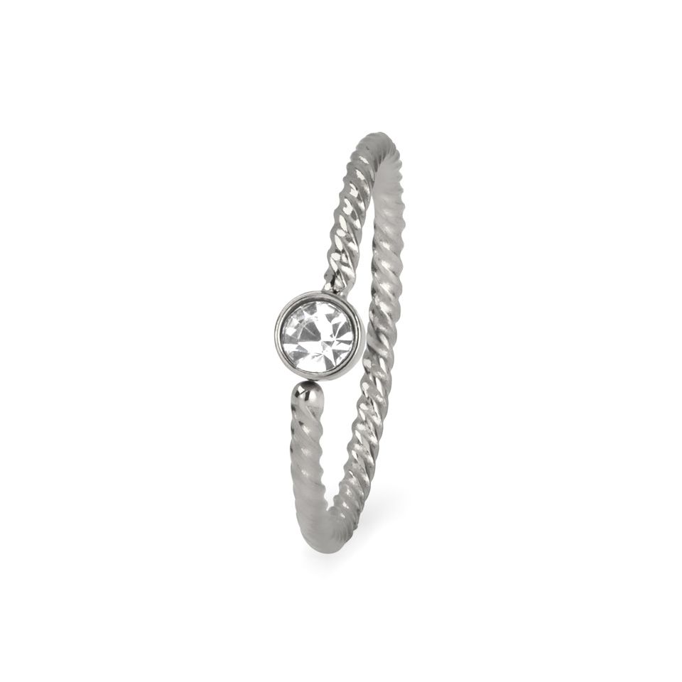 This ring has a different design from traditional captive bead rings. The ring is twisted like a twisted rope. It looks great in the nose piercing, for example.