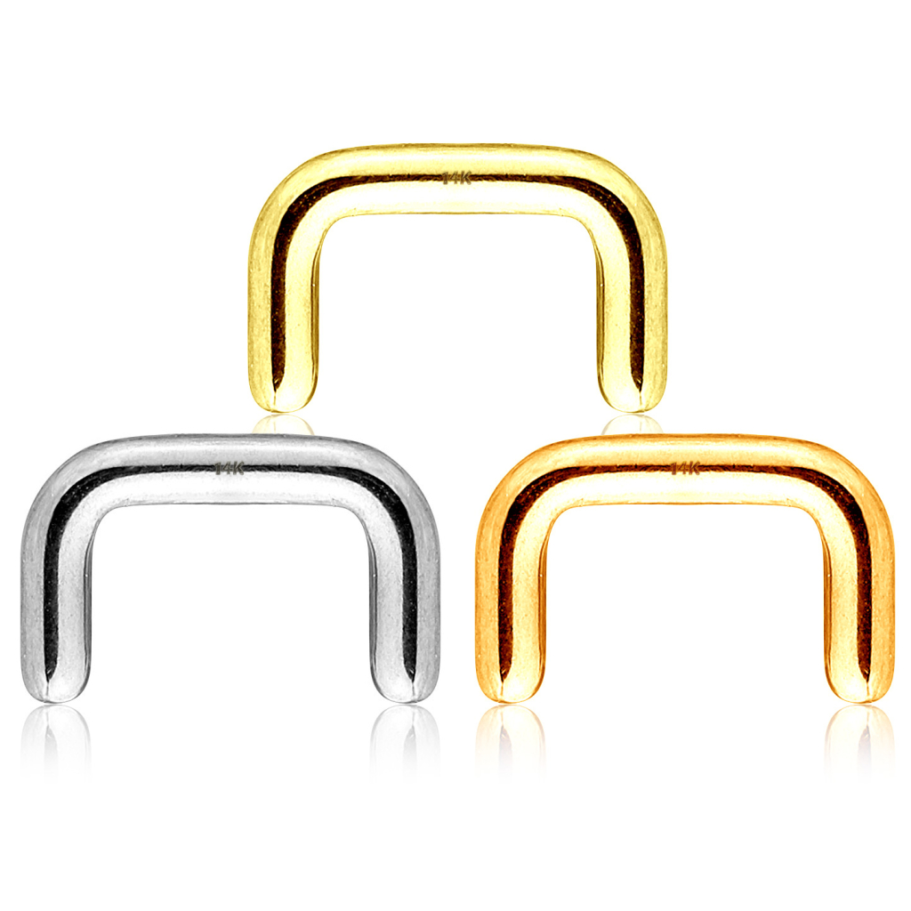 But that’s not it! We have more good news for you: this piece is made of solid 14-karat gold available in your choice of color. For example, you can get it in the classic yellow gold color. You can also choose the gauge size you need for your piercing, for example, 16g (1.2 mm). Check the rest of the color and size options and order your favorite.