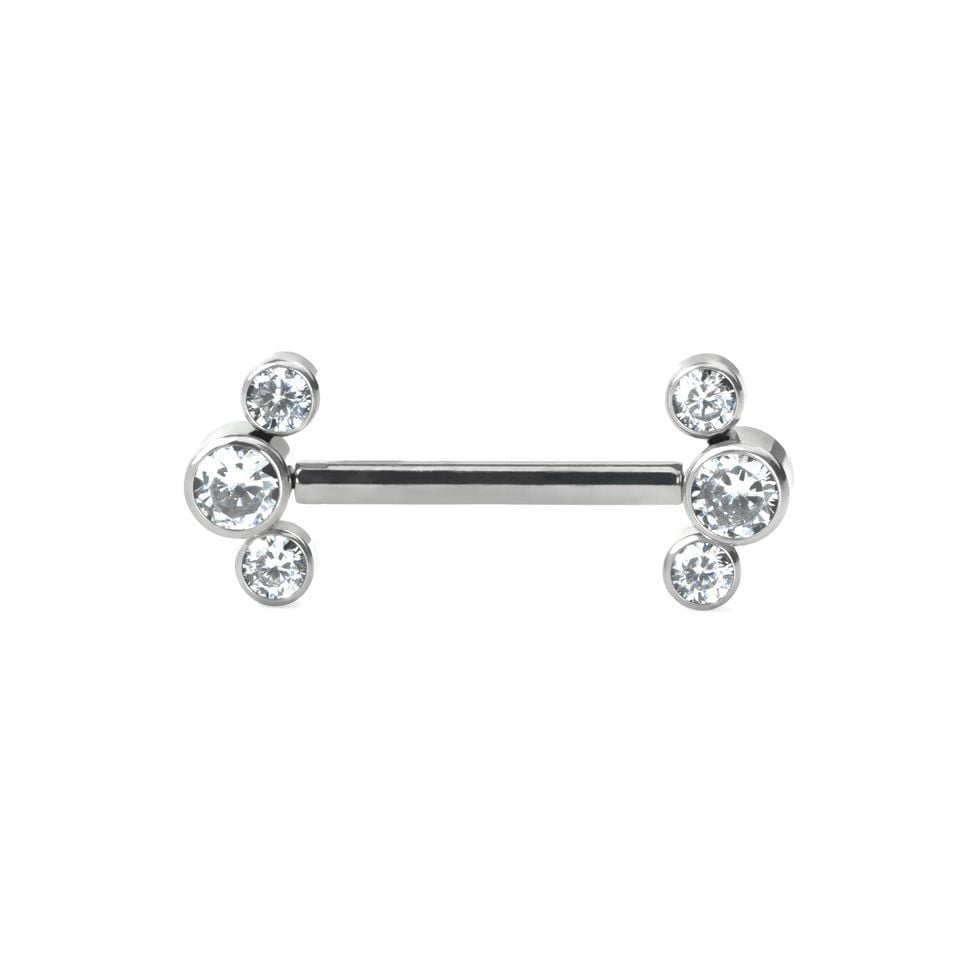 Name: Threadless nipple barbell with 3 CZ bezel set ends