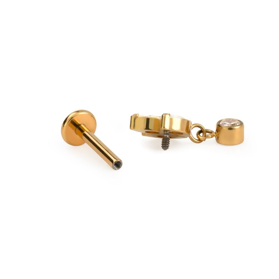 Available in 6mm and 8mm lengths, this will look great in a range of ear piercing locations. Why not pair it with your other jeweled items for a unique arrangement? The top of the labret measures 6.4 mm (0.25") in length and the dangle is 4.8 mm (0.19") long.