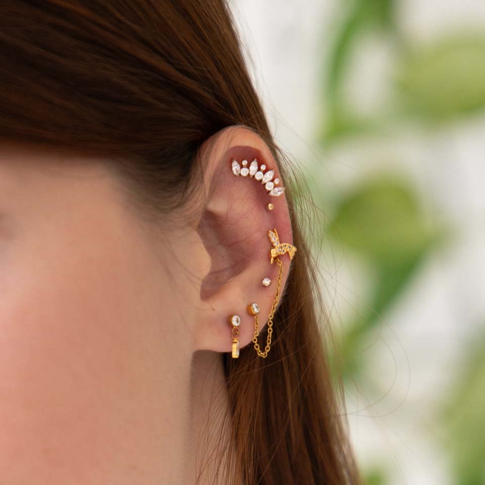 This piece of jewelry is stunning when worn in the helix. I got it in gold, it's easy to wear and of very good quality.