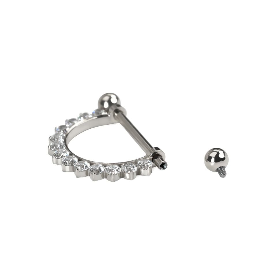 Name: Titanium nipple barbell with CZ stone semi-circle