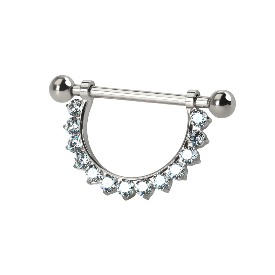 Name: Titanium nipple barbell with CZ stone semi-circle
