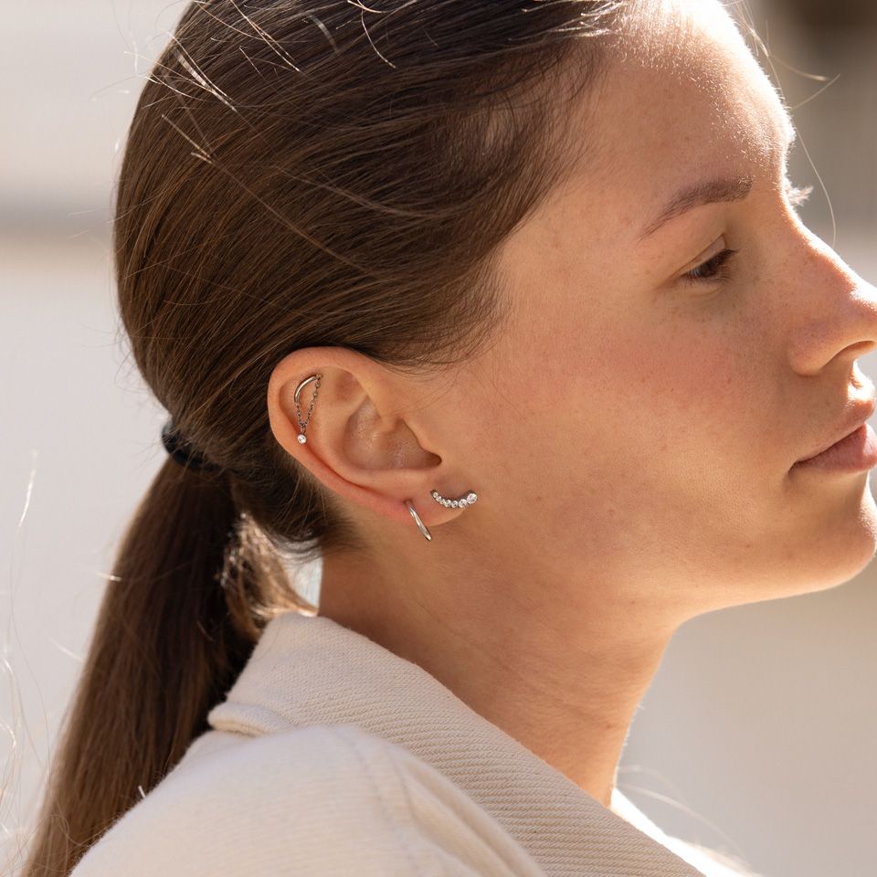 The labret has a practical push-in lock, meaning that changing the jewelry is super simple! You can use labrets in various piercings, like most ear piercings and lip piercings. The curved design of this piece is especially suitable for lobe and helix piercings, where it follows the shape of the ear.