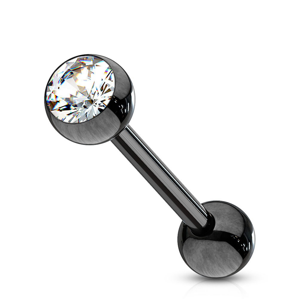 This tongue barbell is made of surgical steel and has a titanium coating in black color.