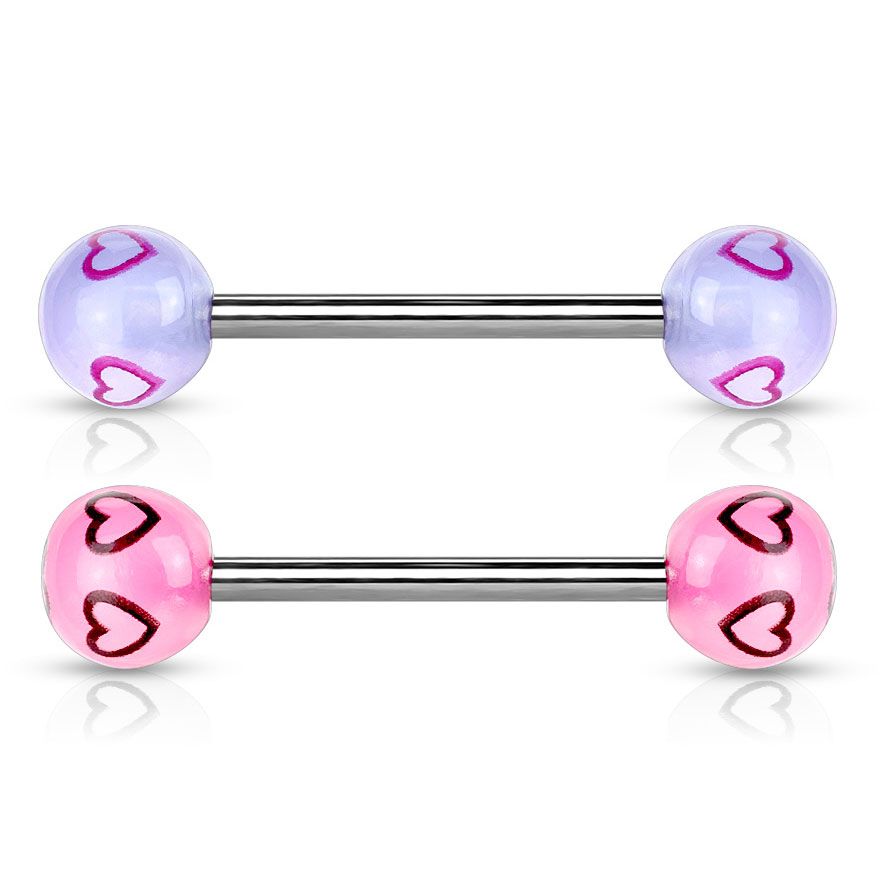This tongue barbell is made of surgical steel and comes with two acrylic balls. Acrylic will protect your teeth your mouth is knocked or hit, so it's an excellent material for tongue piercings.