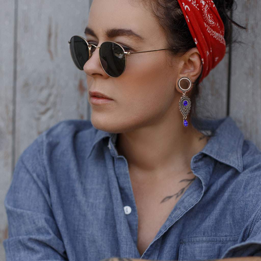 You can use this tunnel if you have an ear gauge between 2g and 5/8" (6 mm and 16 mm), both included. The tunnel is made of surgical steel and has a brass beaded ring at the front. The pendant is also made of brass.
