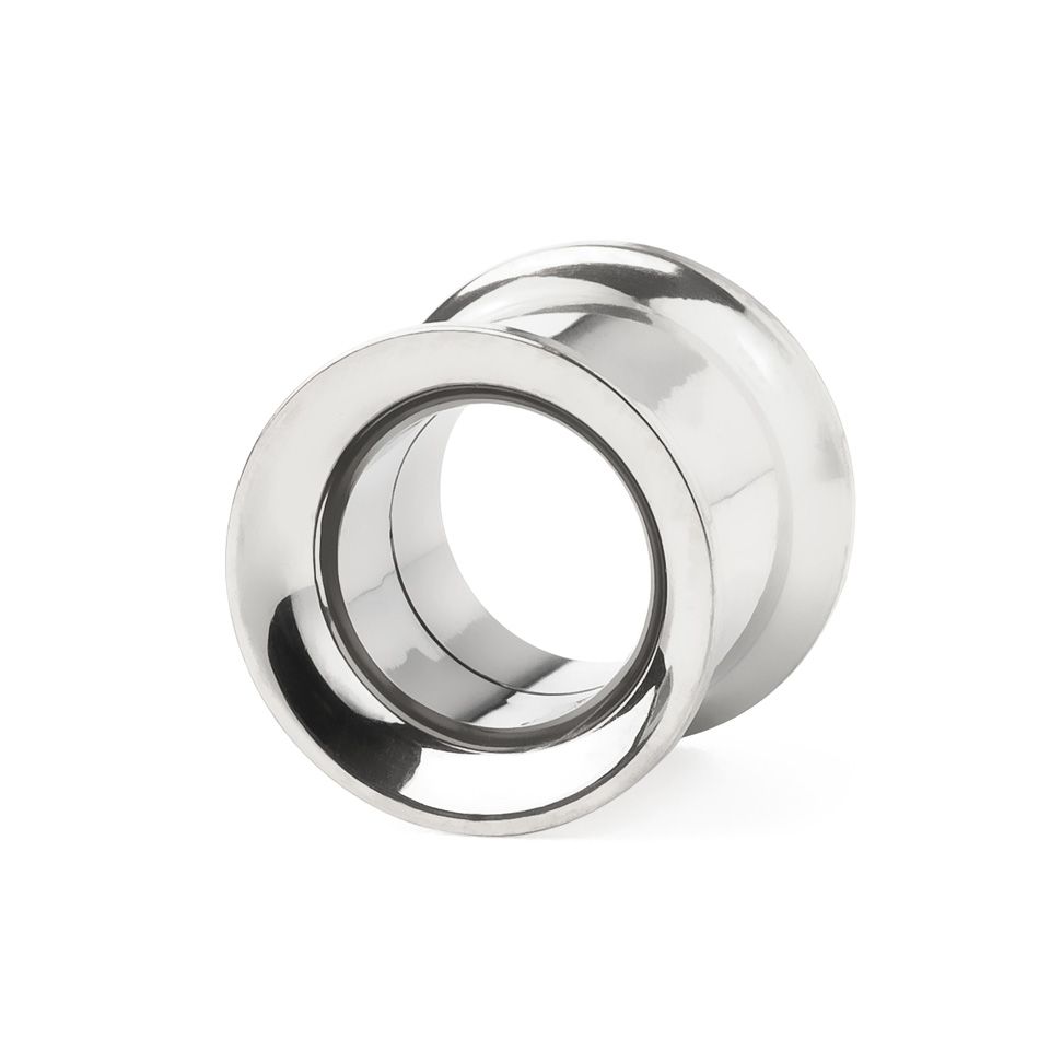 You can get this delicious tunnel in your choice of nine different gauge sizes and three colors. Insertion is effortless, as it's equipped with an internally threaded screw-on back. Simply unscrew the back, slide the tunnel into your earlobe, and screw the back on again. When it's screwed together, the transition is so precise that you can hardly notice it consists of two parts.