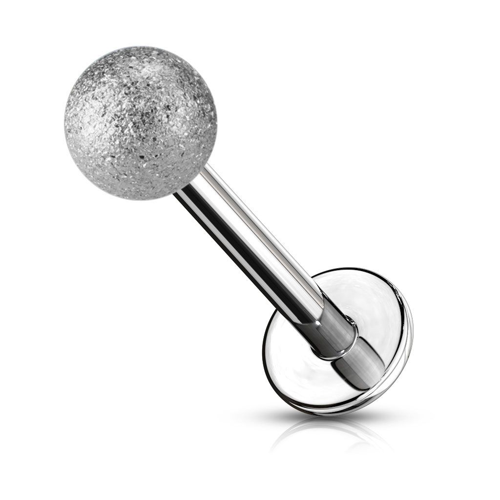 The labret has a steel top ball with a special sandy effect layer. Due to this unique treating process, the ball seems to be covered with heaps of tiny diamonds, which makes it a super shiny and light-reflecting ball when exposed to light.