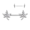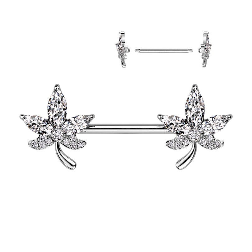Nipple barbell with sparkling covered stones leaf ends