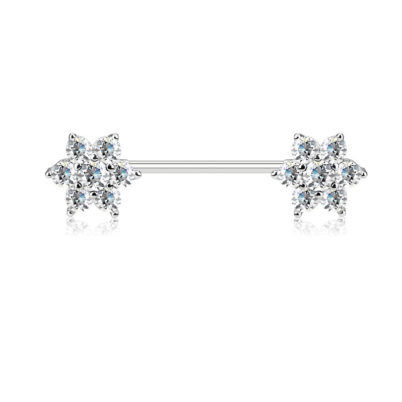 Beautiful and elegant, this nipple barbell features the most beautiful flowers on each end.