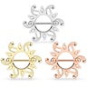 The bar is made of surgical steel, the most widely used material in the piercing world. The shield, with beautiful wavy tips, is made of copper and covered with a layer of rhodium that provides stunning silver and golden colors.