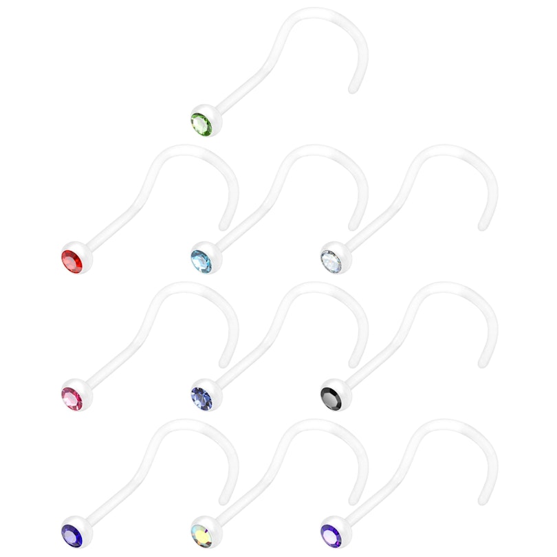 If you dream of nose piercing jewelry that is beautiful, comfortable, and useful at the same time, open your eyes! You found a PTFE nose screw with a gem available in different colors. PTFE is a very flexible plastic material that makes the screw incredibly comfortable to wear. Besides, PTFE is safe, so you can use it even if you're allergic to nickel.