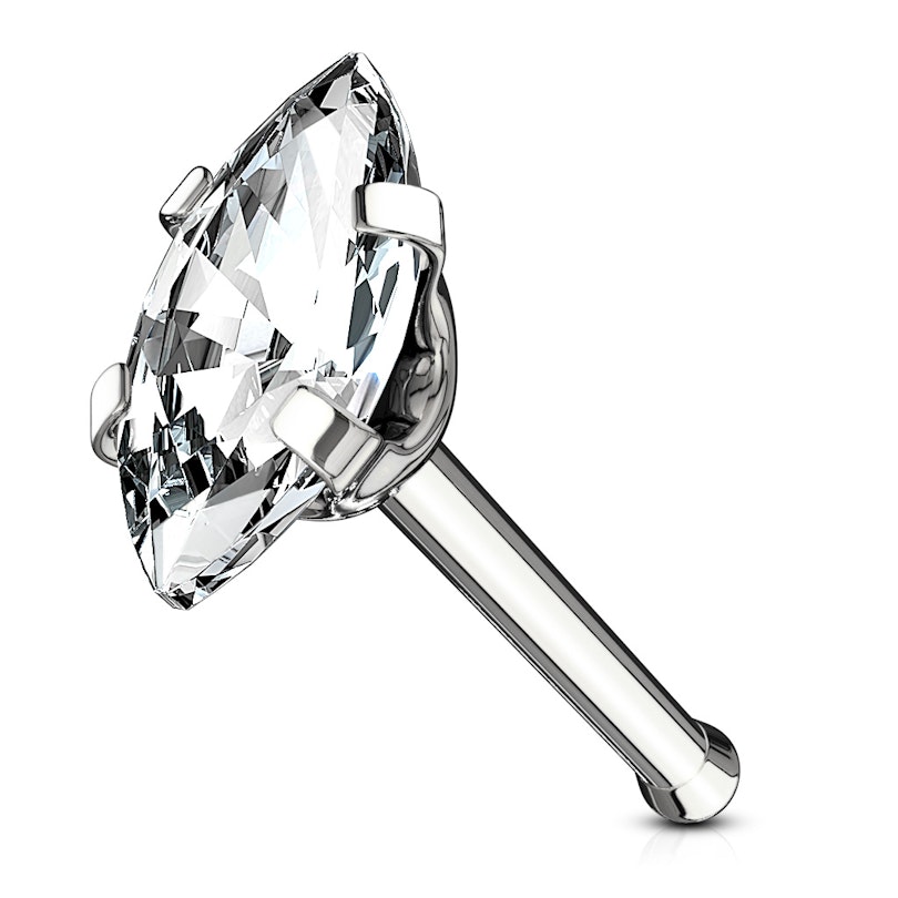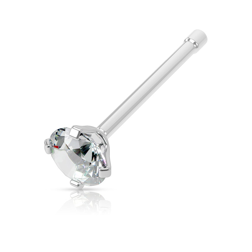 The piece is made of surgical steel and measures 1/4" (6 mm) in length and has a gauge size of 20g (0.8 mm). That means that you can easily slide it through your piercing hole, regardless of whether you had it done with a needle or with a piercing gun. The stud features a rounded end that prevents it from falling out.