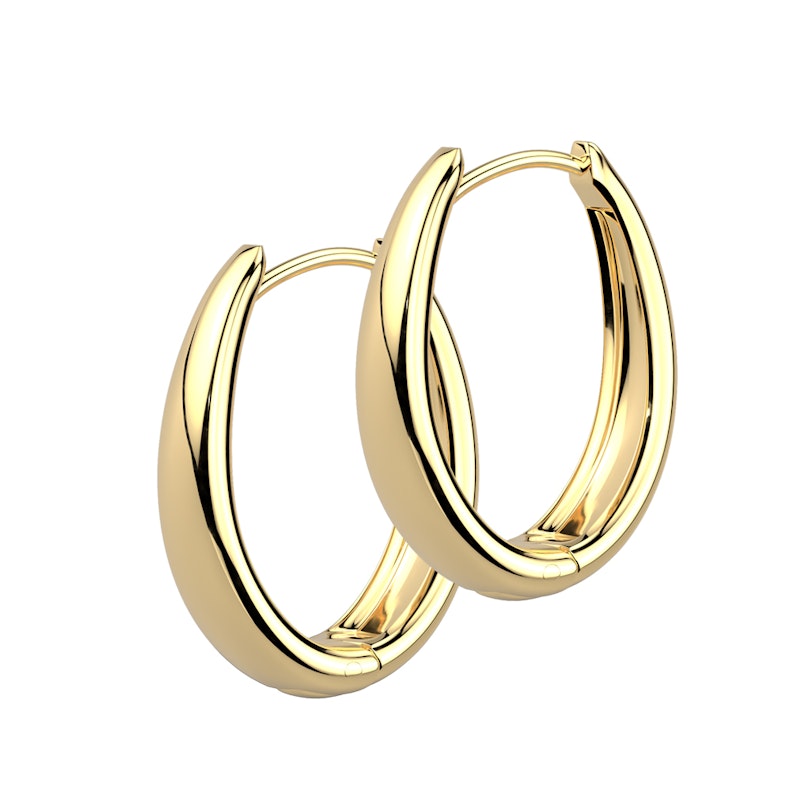 Looking for hoops with an edge? Meet this pair of oval hoop earrings. Made from tough surgical steel, you can grab them in classic silver or gold finishes. Their unique oval design is subtly wider at the bottom, giving your look a fresh twist. Plus, the easy hinged closure means they're a breeze to wear. Sold as a pair, they're ready to instantly upgrade your ear game.