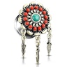 This plug features a decorative front that looks like a flower. The flower has a turquoise acrylic bead in the center that matches the red beads around it beautifully. Around the edge of the plug, a frame that consists of small leaves makes the flower stand out. Not only is there a flower with lots of details, but the plug also includes three feathers that hang freely and will follow your body movements.