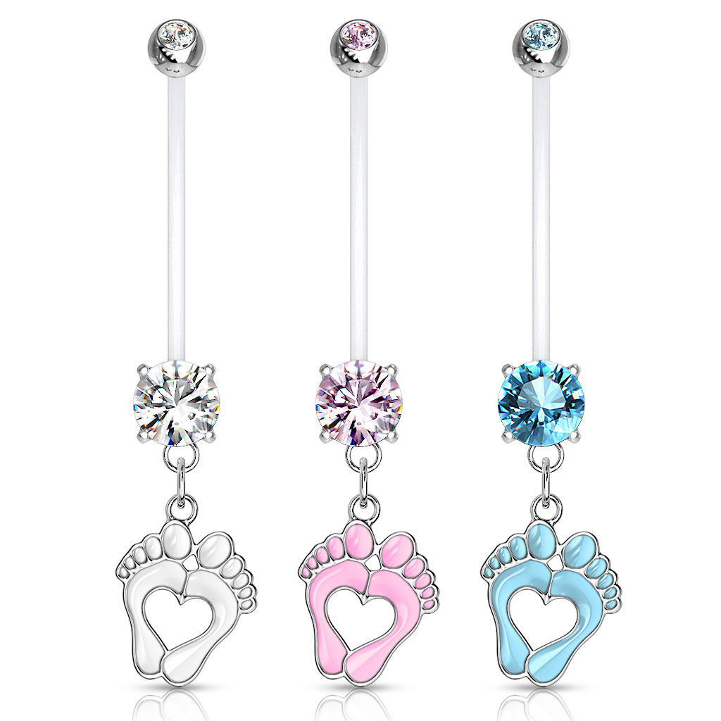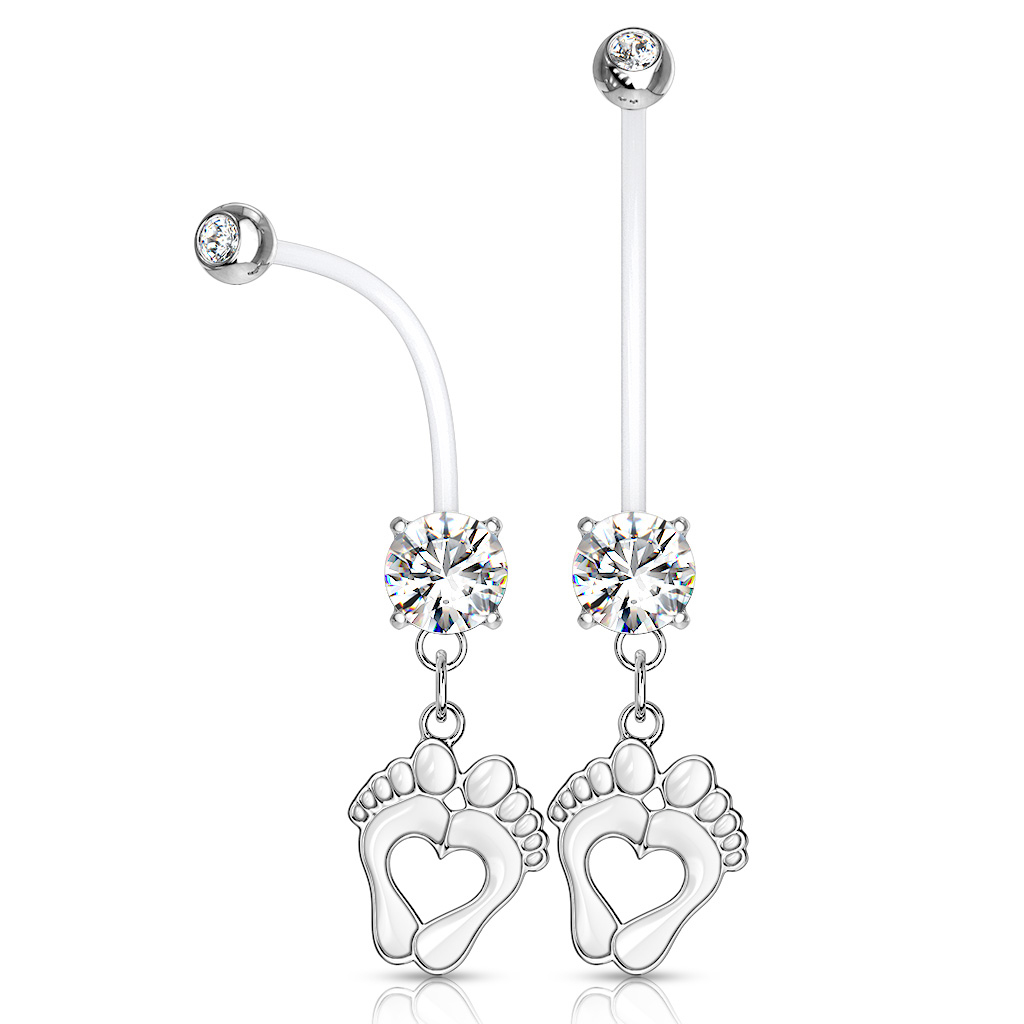 Name: Pregnancy belly ring with feet and hollow heart dangle