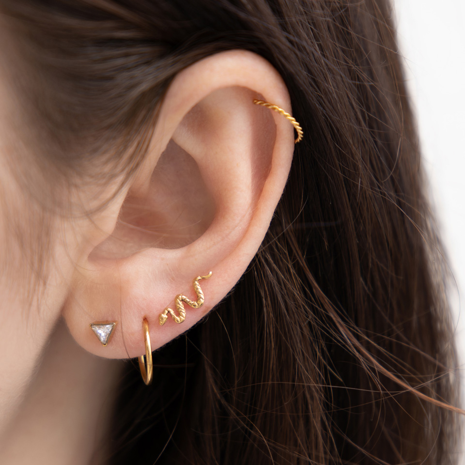 The jewelry is very cute and detailed; the fact that it is thin makes it understated and wearable even if you have multiple earrings in one ear without making the effect too heavy. The only problem I'd like to mention is that the stem of the earring is very short, while the post at the back is too long, which makes it difficult to close.
