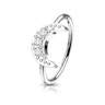Surgical steel seamless ring featuring a crescent moon. The moon is decorated with three clear stones in the center, surrounded by tiny stud details.