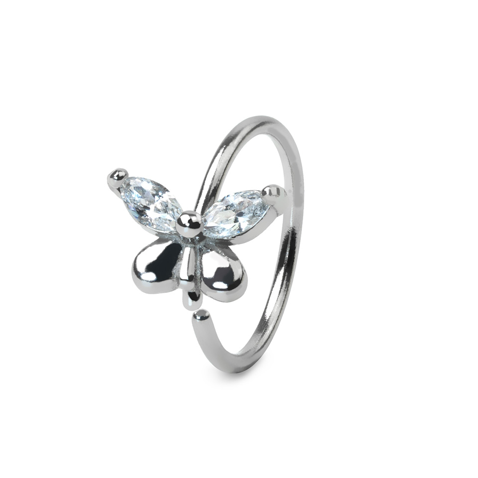 The ring has a thin thread (20 G) and a small diameter, so this charming butterfly will look cute in your nose or ear piercings, including but not limited to nostril, tragus, and helix piercings.