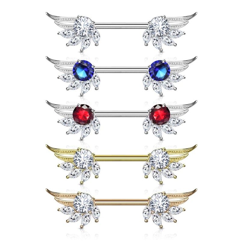 Barbel za bradavico z angelskimi krili in kamni v obliki markize