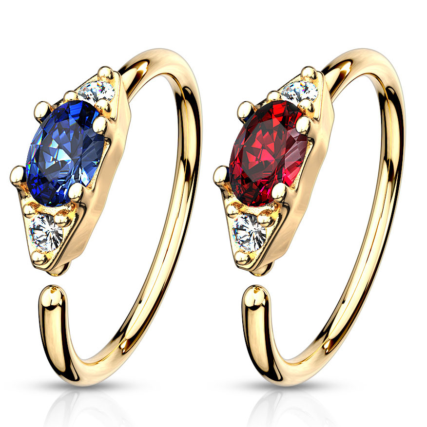 Brezšiven obroček z ovalnim kamnom v različnih barvah