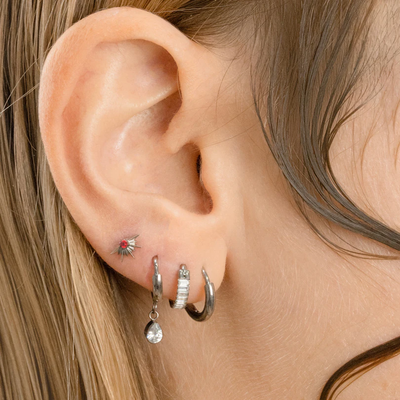 Izdelan je iz titana, je hipoalergen, vodoodporen in lahko z ustrezno nego večno traja. Zaradi notranjega navoja je varen za nošenje, ne povzroča draženja med vstavljanjem in lahko se zaneseš, da ti ne bo zdrsnil iz ušesa sredi noči.