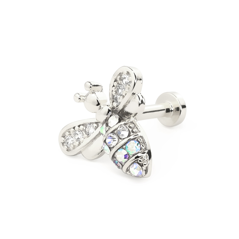 Labret z notranjim navojem in čebelico, okrašeno s kamni
