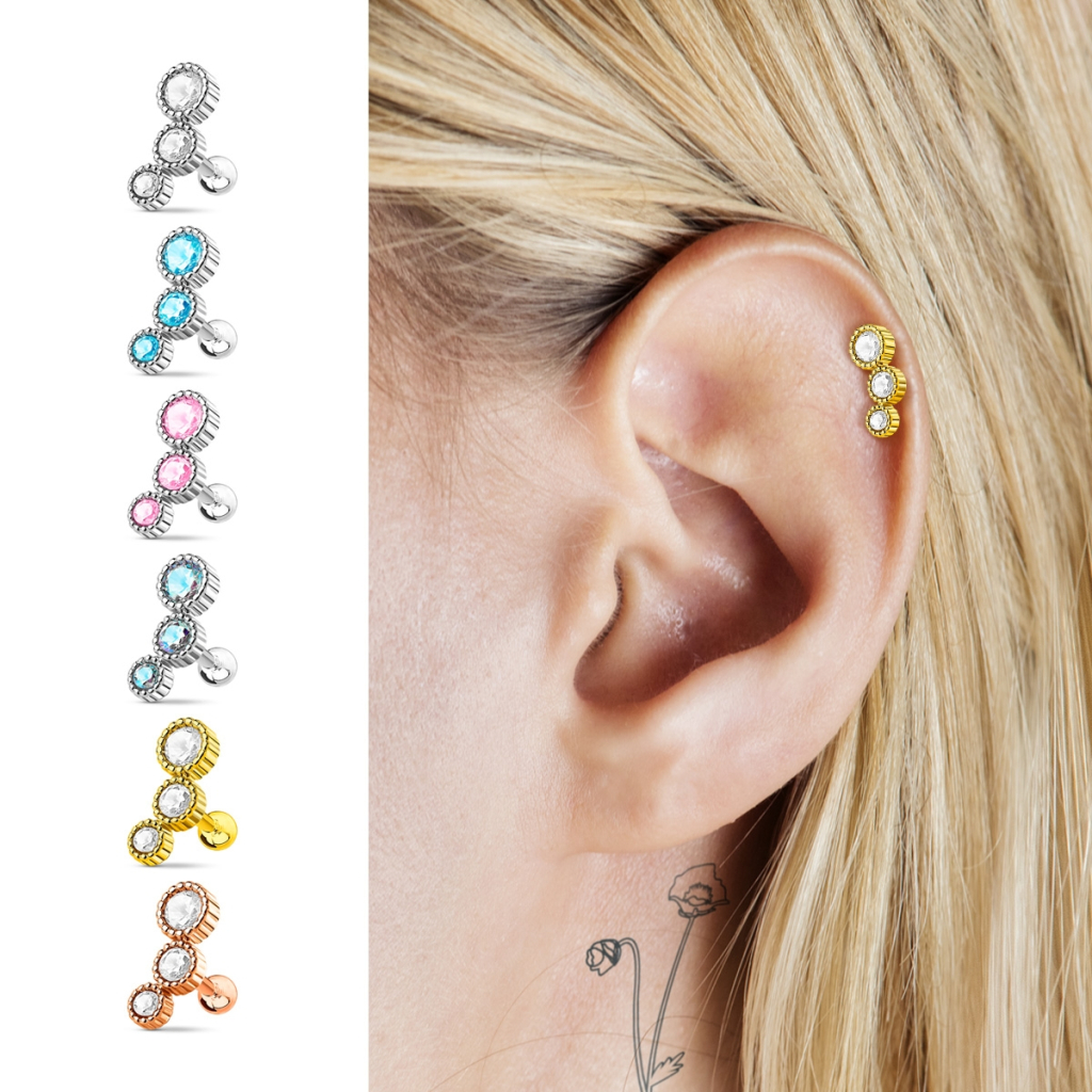 Pirsing za helix s 3 okroglimi kamni v različnih velikostih