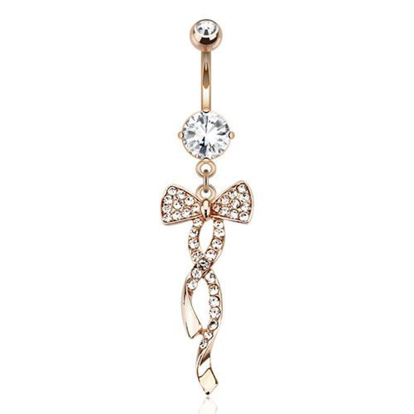 Pozlačen nakit za popek z obeskom z okrašeno pentljo