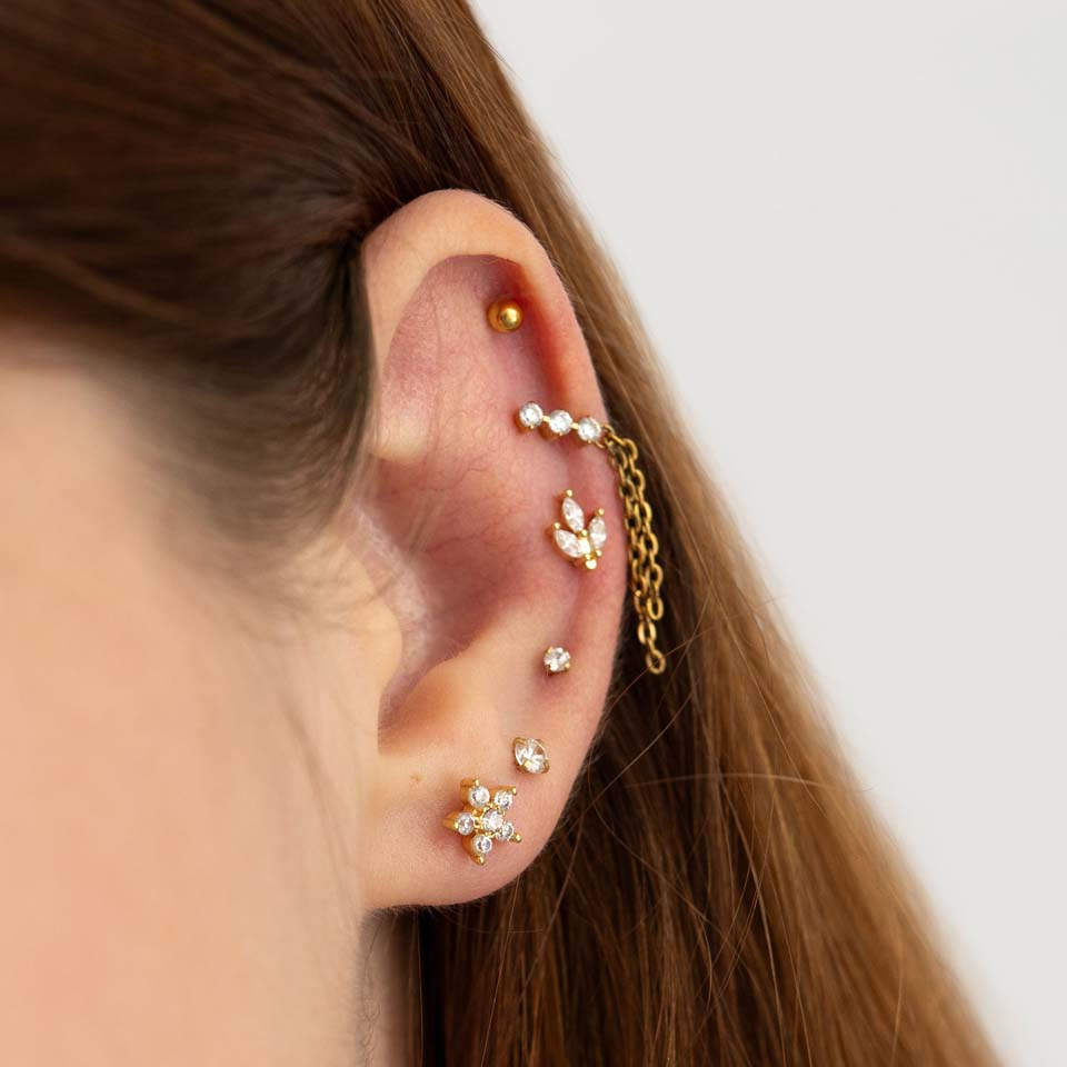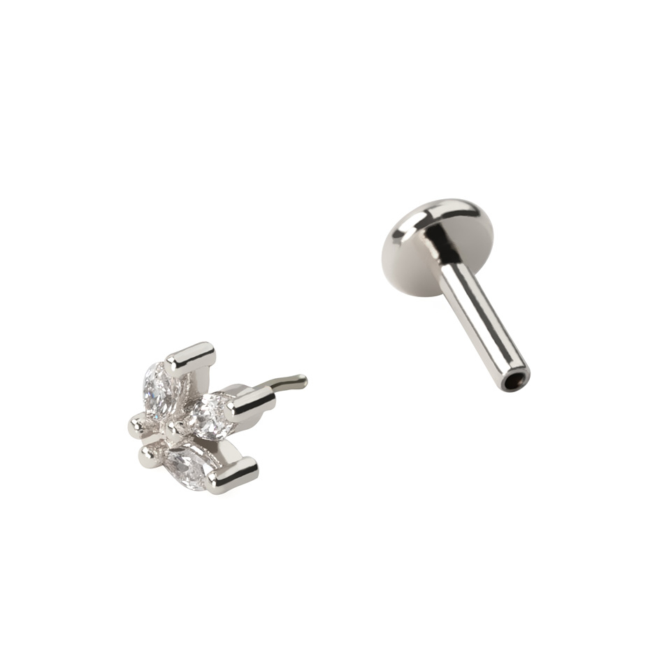 Izvedba te pirsinge je res dobro narejena, je res majhna in ženska, a kljub temu opazna in ni običajen, dolgočasen kos. Naročil sem jo v rožnatem zlatu (samo steblo je srebrne barve, kot je prikazano na slikah) in sem zadovoljen s proizvodom.