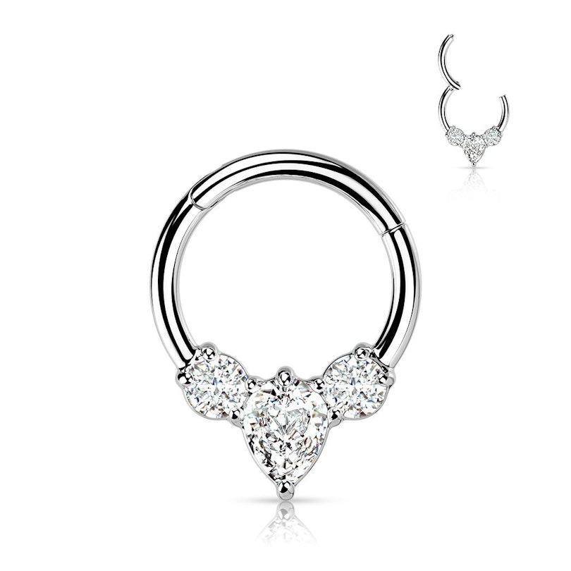 Segmenten obroček iz kirurškega jekla z osrednjim kamnom hruškaste oblike