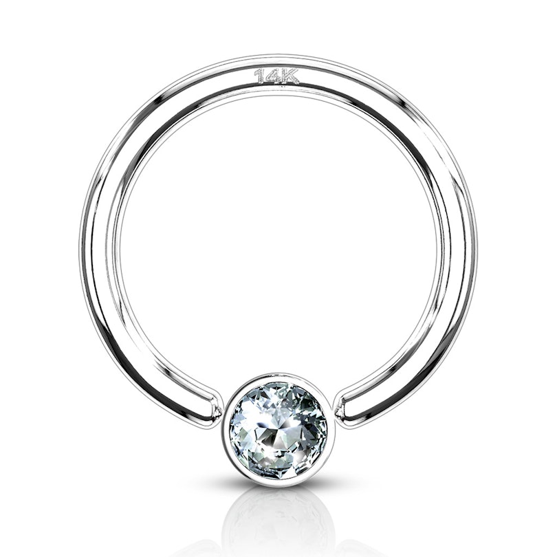 Ime: Captive bead ring made of 14k gold with bezel-set stone