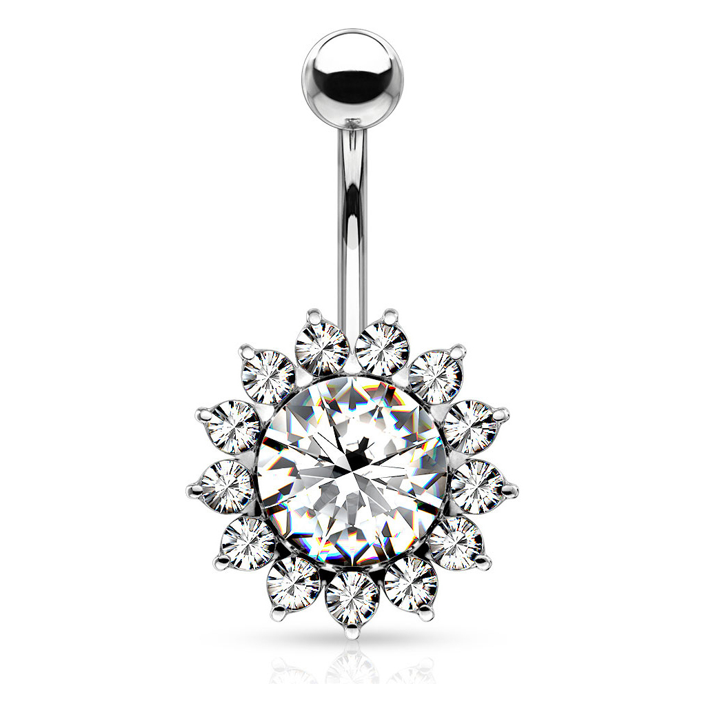 Činka do pupku v tvare slnečnice s kamienkami