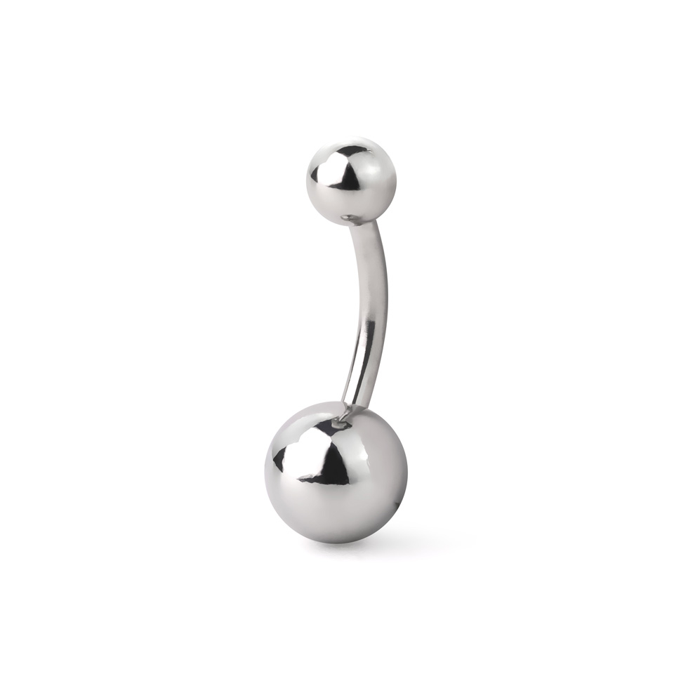 This curved barbell is made of 100% pure surgical steel and has been specially polished to avoid nickel particle release. It's available in different sizes, but the most common length for belly button rings is 3/8" (10 mm) for piercings that are completely healed.