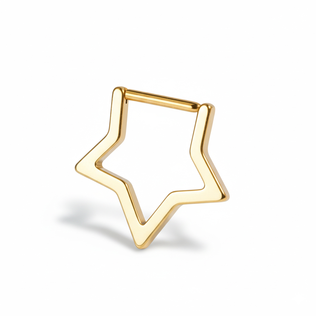 Tento titánový clicker v tvare hviezdy sa dokonale hodí do viacero piercingov. Skvele bude vyzerať v ušnom lalôčiku, septume, helixe alebo dokonca v rooku. Je vyrobený z odolného titánu, je vodoodolný, šetrný k citlivej pokožke a vyrobený tak, aby vydržal. Vďaka pántu sa ľahko vkladá do piercingu. Tento šperk je dutý, čo mu dodáva robustný vzhľad a zároveň je veľmi ľahký a pohodlný na nosenie.