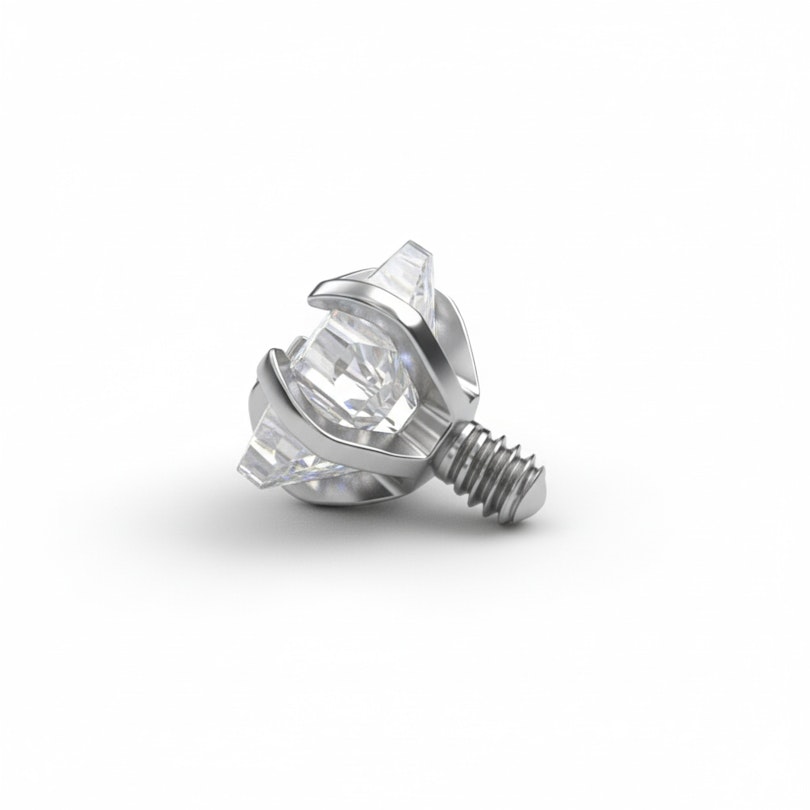 Je vyrobený z hypoalergénneho titánu ASTM F136, čiže je vodoodolný a trvácny. Pasuje na 1,6 mm dermály s 1,2 mm vonkajším závitom. Keď budete chcieť nový look, môžete si váš šperk vymeniť za tento top pomocou správnych nástrojov. Je to jednoduché, ale treba to robiť opatrne.