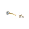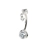 This beautiful belly ring features a round CZ stone in the bottom ball, and smaller square stones in the top ball and the charm that hangs from the top ball. All of the stones are prong set.
