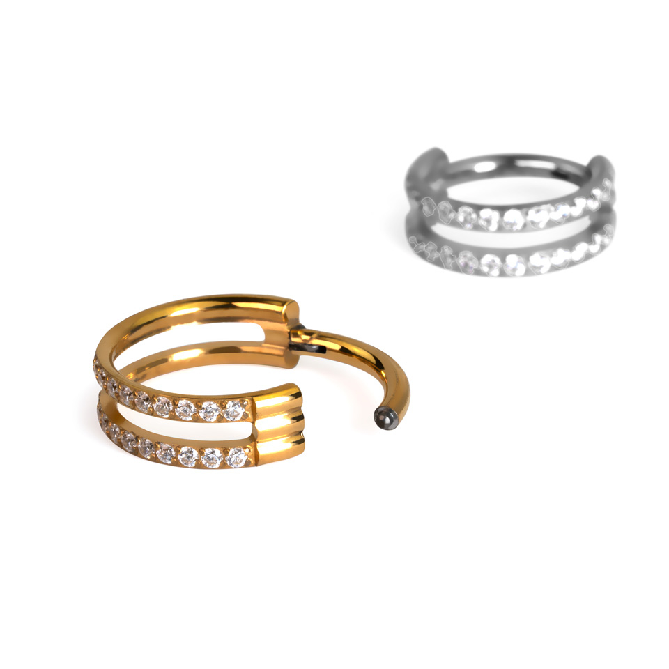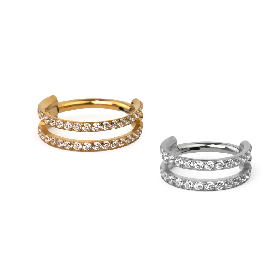 Titanium double ring with stones