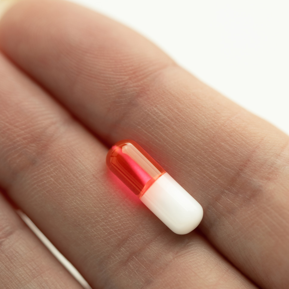 The size of the bicolor capsule is inspired by real capsules of 5/8" (16 mm) in length and a thickness of 3/16" (5 mm). However, it has little to do with regular medicines. This original capsule is available in seven different color combinations. One half of the pill is white in all the models, while you can choose the color of the other half from a selection of colors.